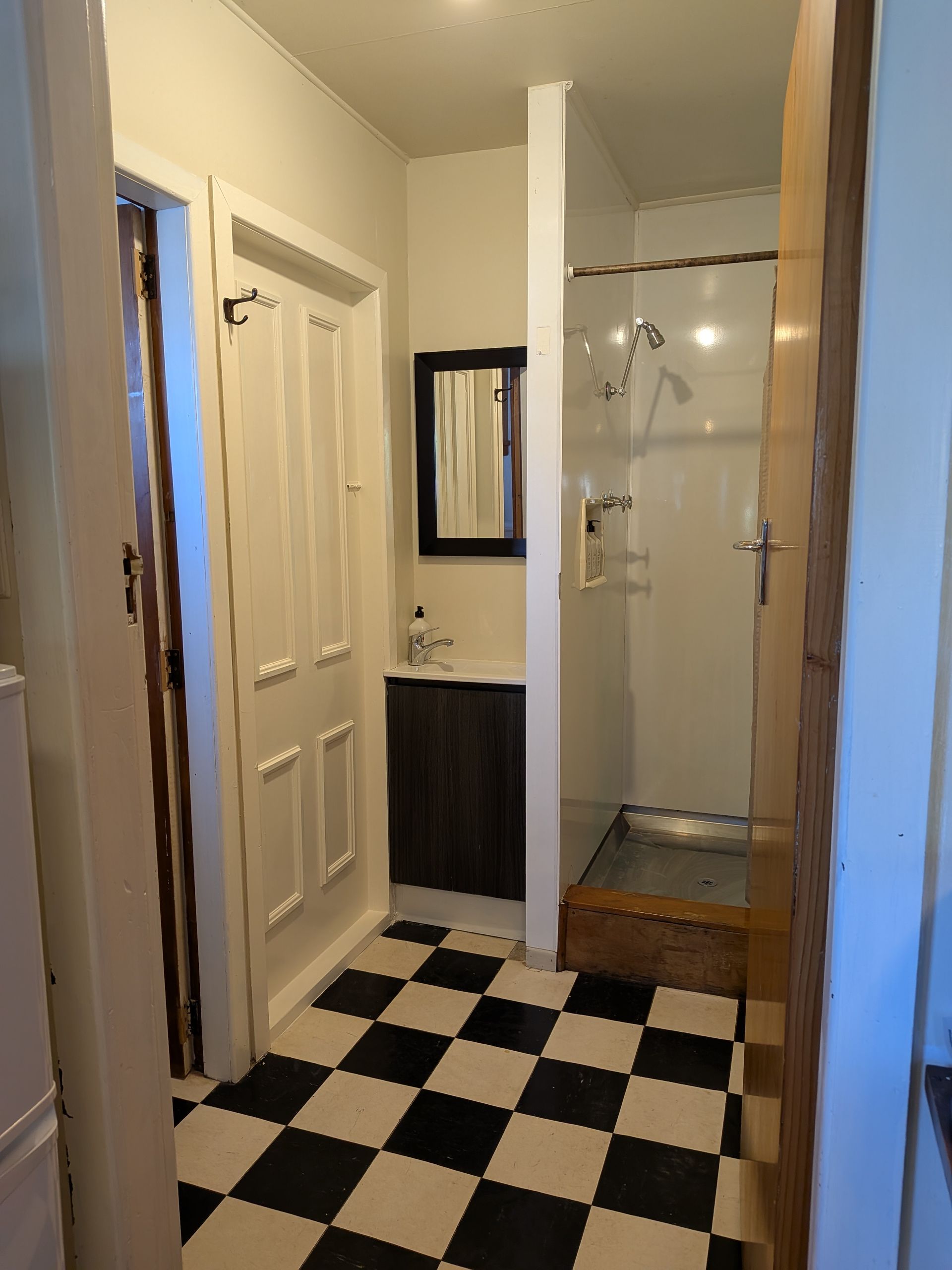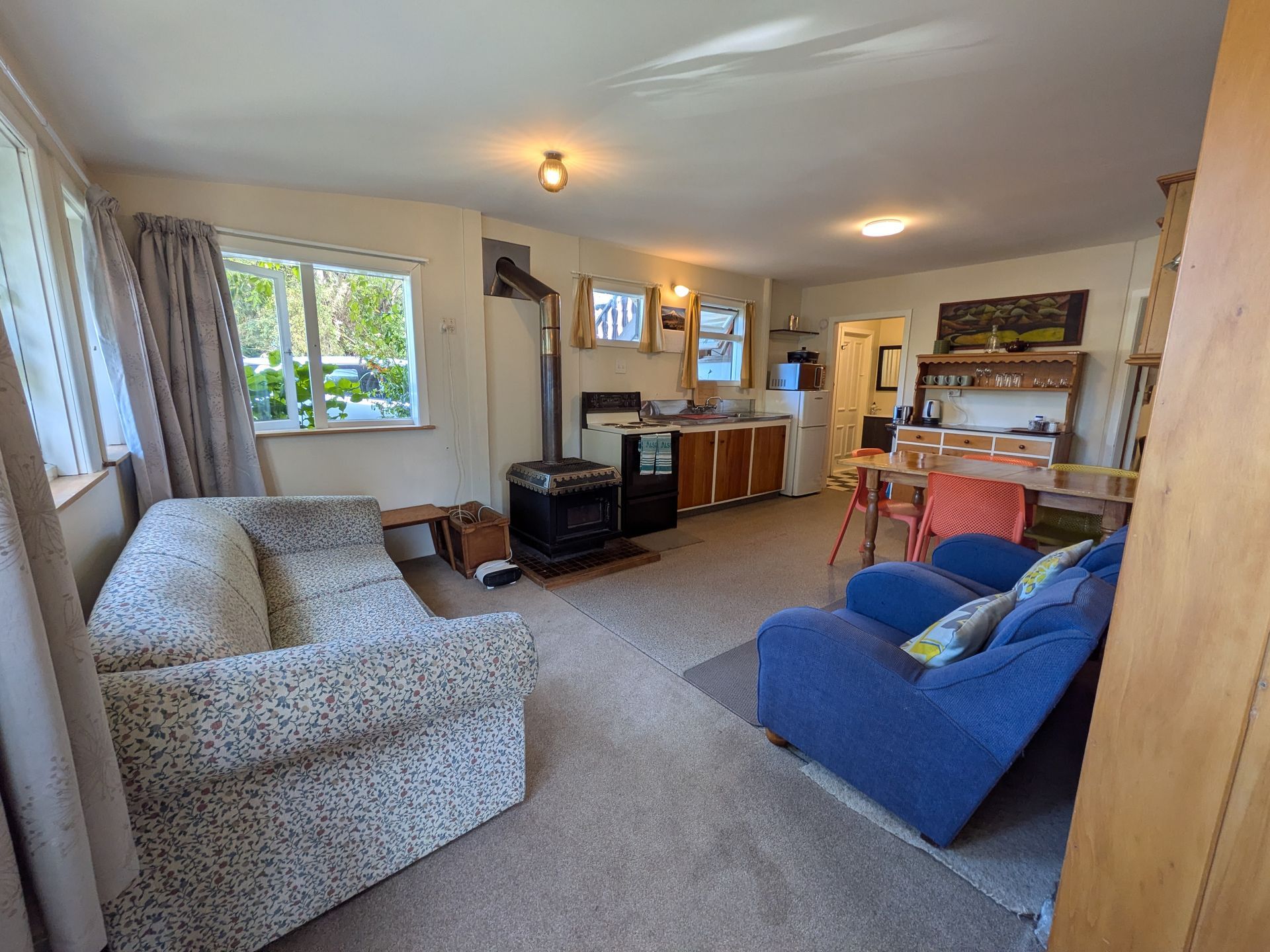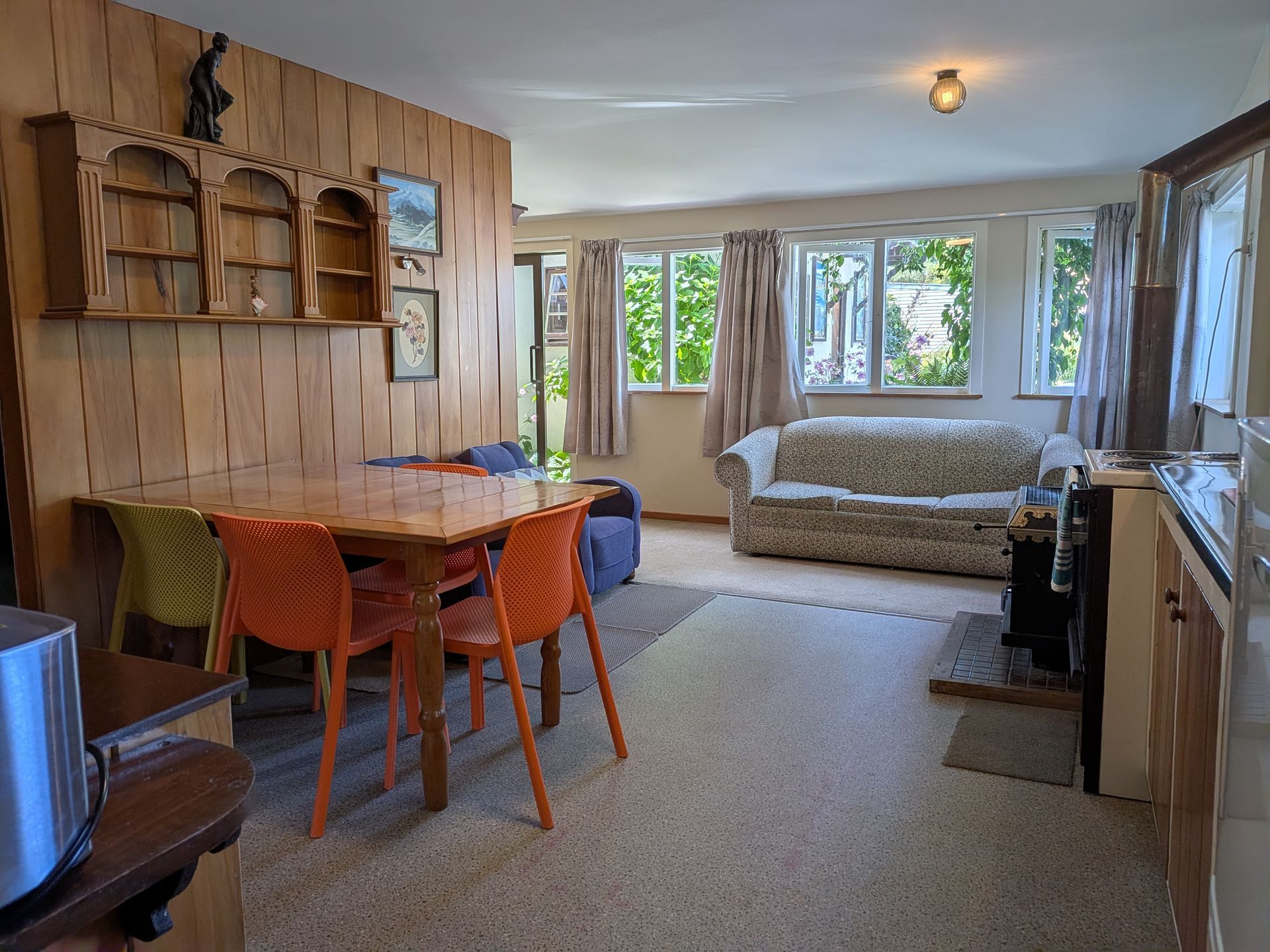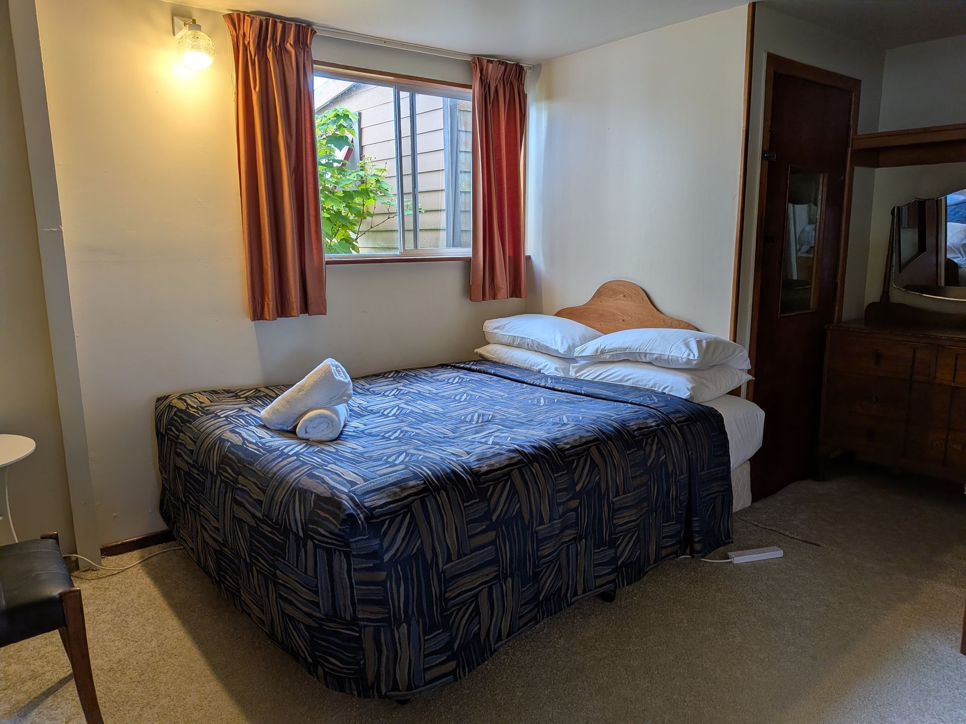 A Studio style retro unit with a fantastic view. The bedroom and living area are one compact room with a queen bed. There is a wee kitchenette with all the basics including fridge, microwave, and a cook top. Also an ensuite, free wifi and a car park.