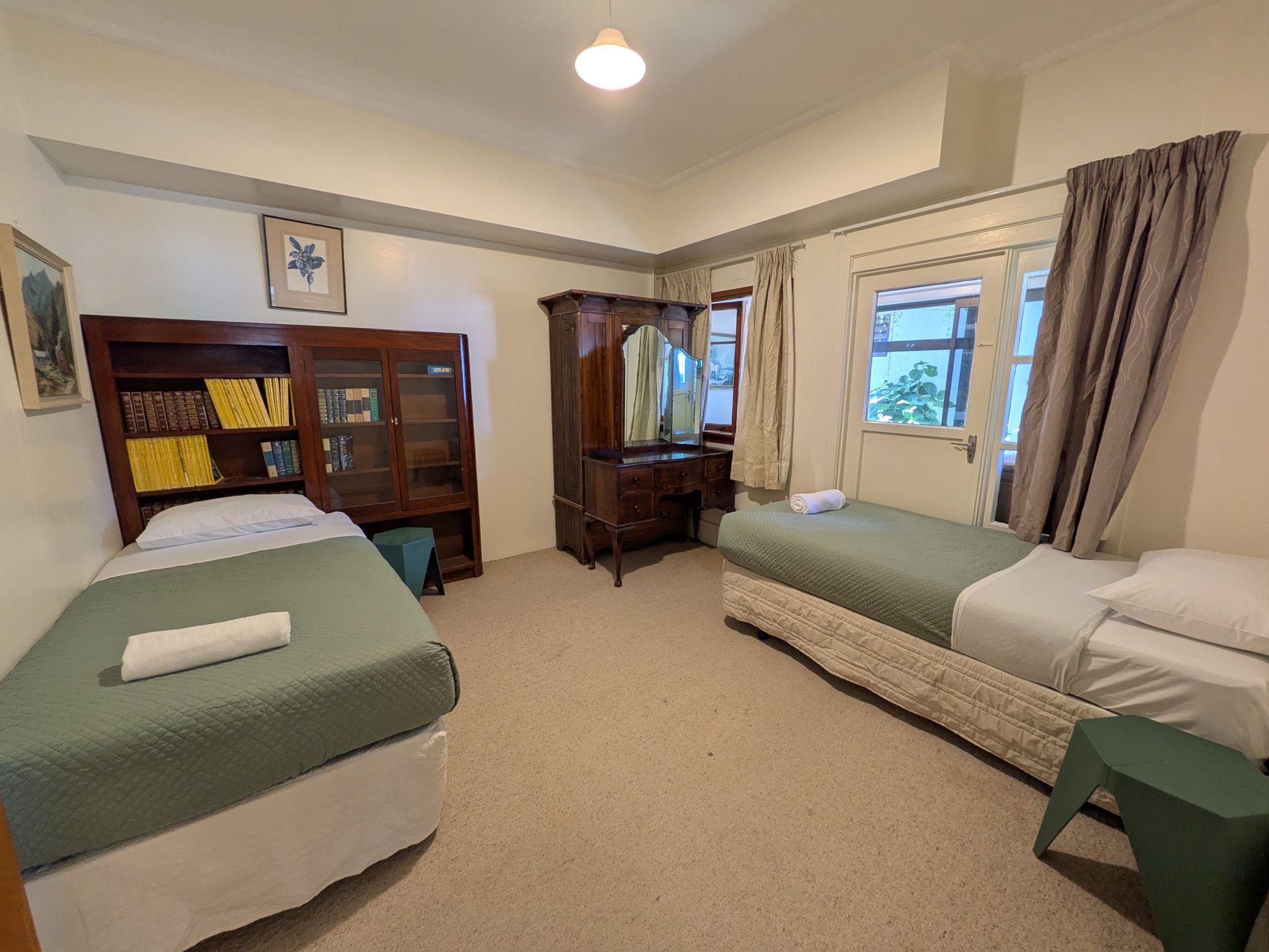 - There are two bedrooms, one with a queen and the other with twin singles, plus an extra single bed in the living room.